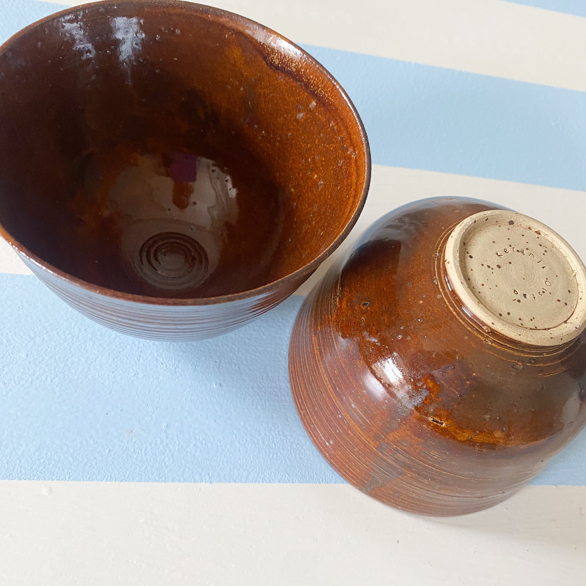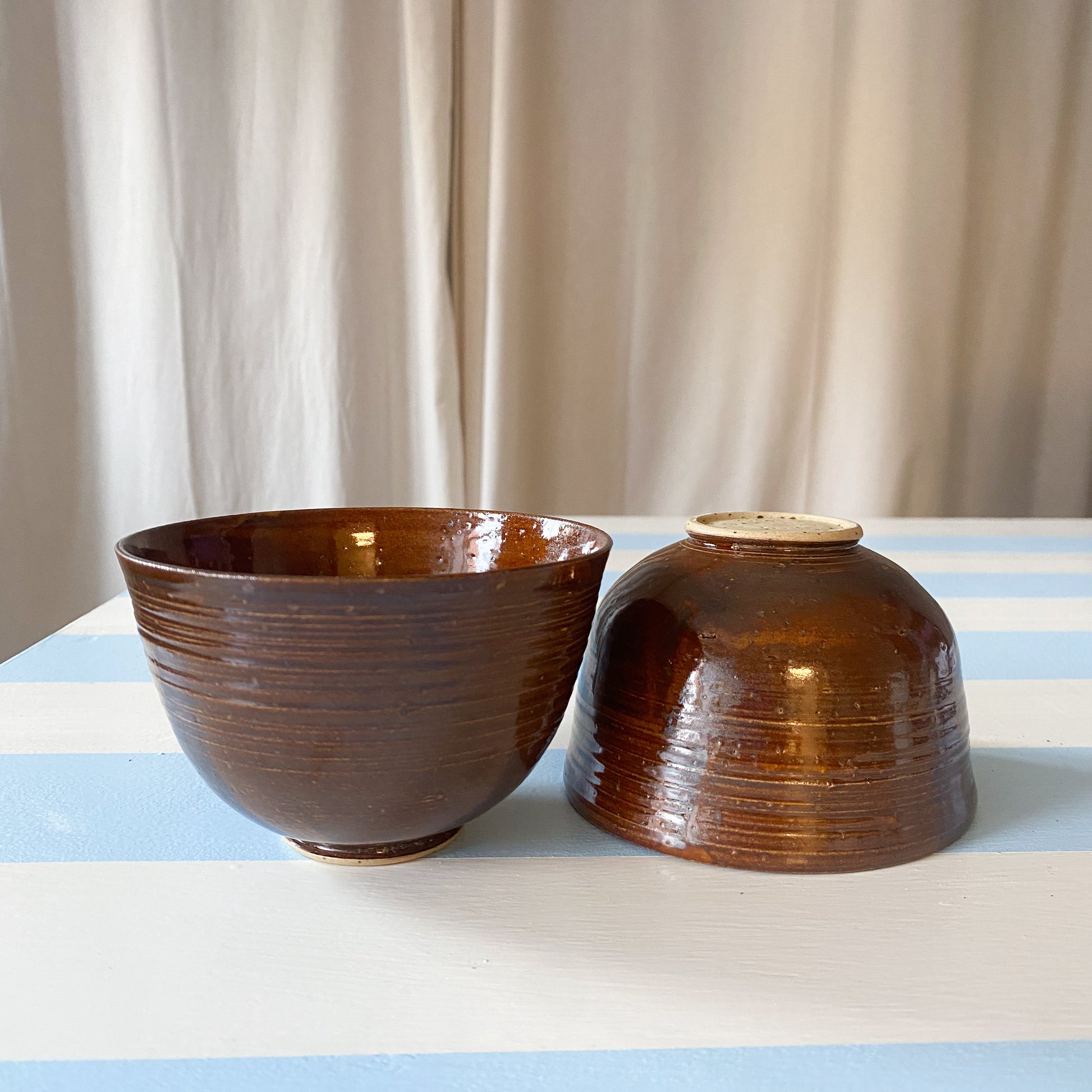 Skålen fremstår med smukke nuancer i den brune glasur.