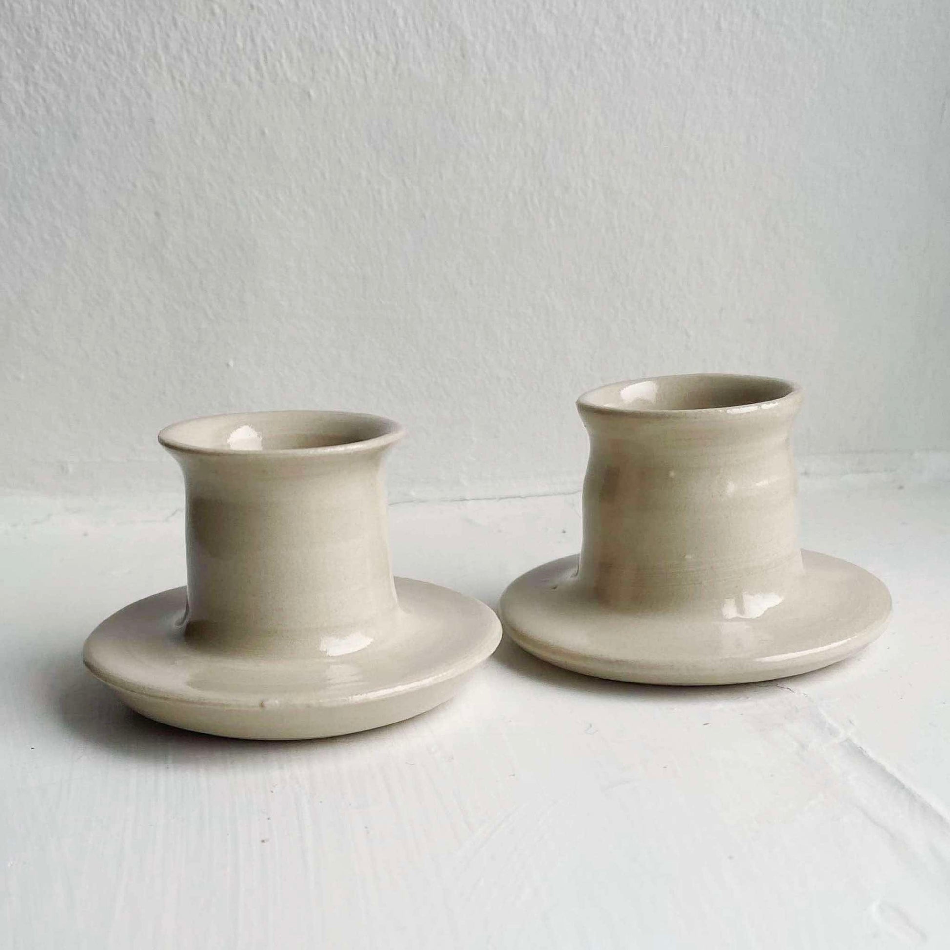 Elegant hånddrejede lysestage i stentøjsler med en blød, lys glasur. Det enkle og tidløse design gør dem perfekte til både hverdag og opdækning. Passer til standard stearinlys. Prisen er stk. pris.